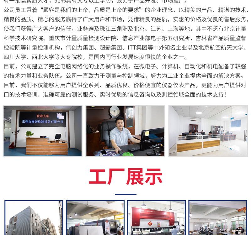 歡迎來到東莞市嘉諾檢測設備有限公司網站,我們竭誠為您提供服務!公司主要專業從事各類精密品管檢測儀器及環境試驗設備研發和銷售